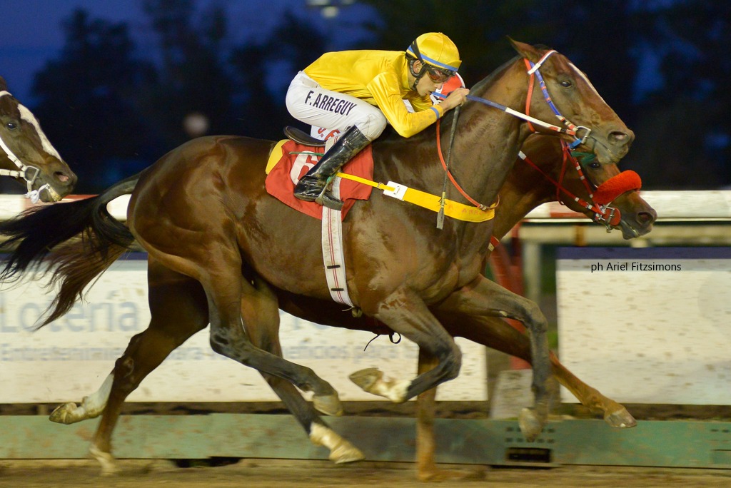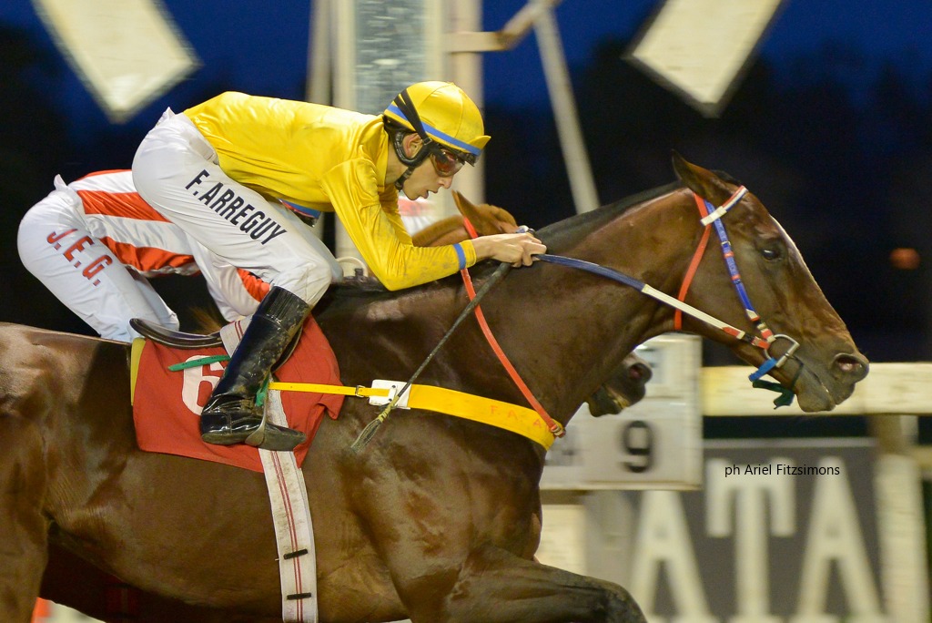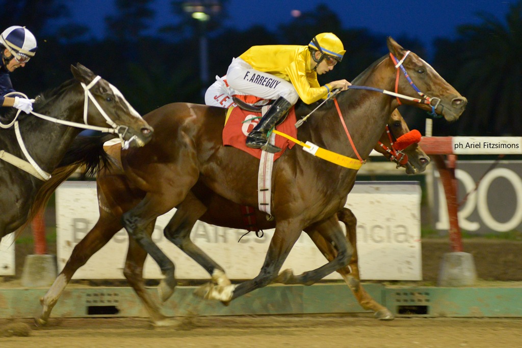 El defensor de los colores del Stud Santa Clara se lleva Condicional (1600m-Arena) para todo caballo de 5 años y más ganadores de una y dos carreras en el Hipódromo de La Plata. Montado por Francisco A. Arreguy y preparado por Maria E. Toledo, derrotó por ½ pescuezo a El Gran Poli (Perfectperformance), en tercer lugar llegó Rudisha (Bahiaro) a ¾ cuerpo y logró el cuarto puesto Montecarlo (Verolight) a 2¼ cuerpos. El zaino doradillo oriundo del Haras Orilla Del Monte, marcó 1.39.32 para la distancia, pagando 2.75 a ganador.